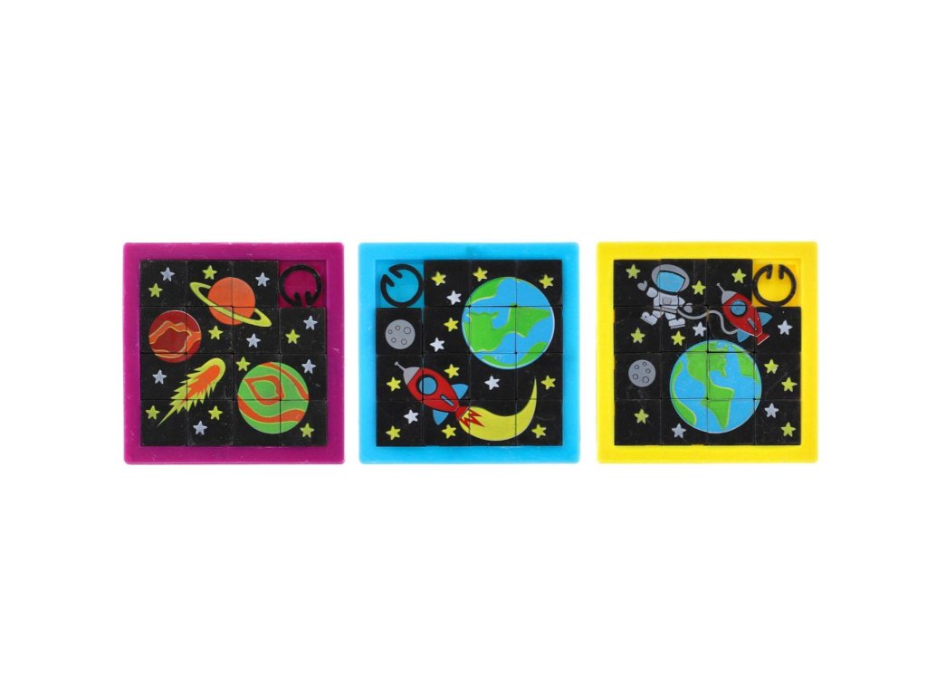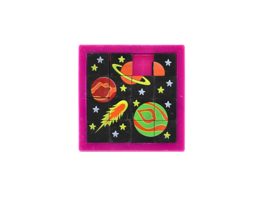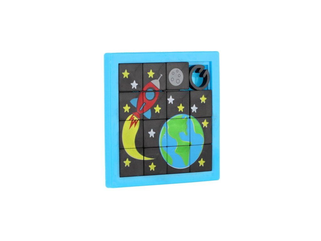 Klasická přesouvačka s obrázkem Vesmíru se postará dětem o zábavu kdekoliv. Přesouváním kostiček se vytvoří obrázek. Malý a lehký hlavolam může dětem krátit čas také na cestách.