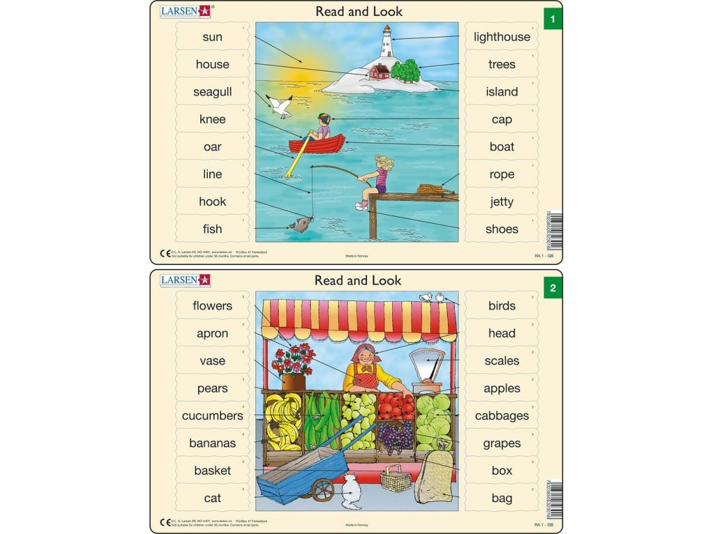 Puzzle Angličtina – slovíčka RA1 16 dílků Rychle a snadno se naučte vybraná slovíčka v angličtině! Puzzle má jeden velký centrální obrázek a osm dílků s anglickými slovíčky na každé straně. Každý dílek obsahuje šipku, která směřuje k odpovídajícímu objektu v centrálním obrázku. Toto zábavné a jednoduché cvičení umožní dětem naučit se 16 anglických slovíček.