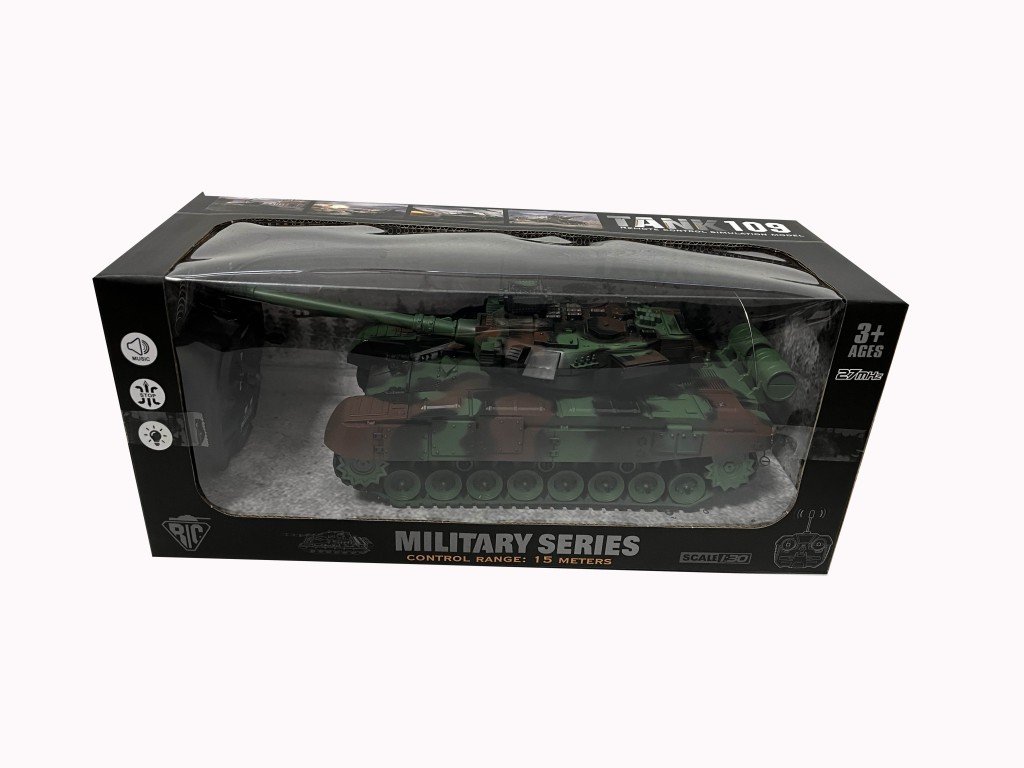 Tank funguje na frekvenci 27 MHz (frekvenční pásmo 27,145 MHz) a má dosah dálkového ovládání mezi 10 a 25 metry (obvykle kolem 15 m), což zajišťuje stabilní signál a pohodlné ovládání na střední vzdálenost. Maximální radiofrekvenční výkon je 0,5 mW. Skvělý model pro děti, které milují vojenské vozidla a akční hračky!