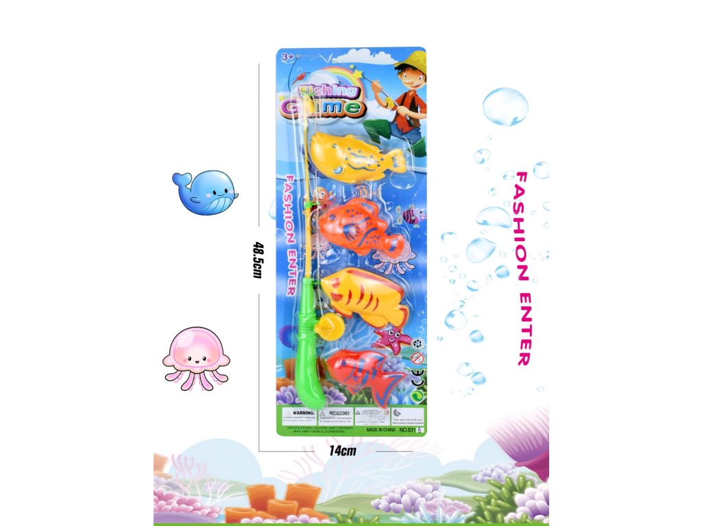 Rybolov obsahuje prut a 3 ryby.