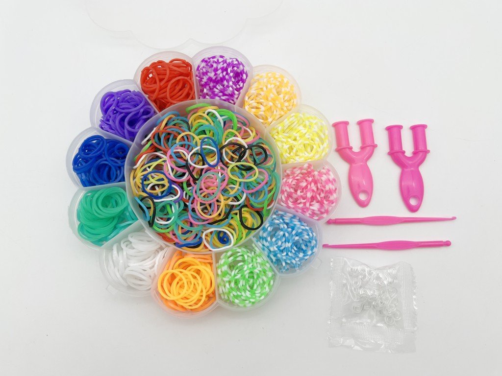 Pusťte se do tvoření s touto kreativní sadou na výrobu náramků Loom Bands! V krabičce ve tvaru květiny najdete 900 ks barevných gumiček, malý ruční stav, háček a spojky – vše, co potřebujete pro výrobu krásných gumičkových náramků. Ukažte svou kreativitu, vytvořte si originální šperky a ozdoby a potěšte jimi kamarády! Skvělý způsob, jak strávit čas a rozvíjet zručnost.