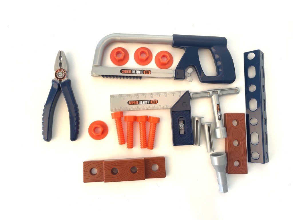Sada plastového nářadí pro malé kutily. Výrobek je vhodný pro děti od 3 let.