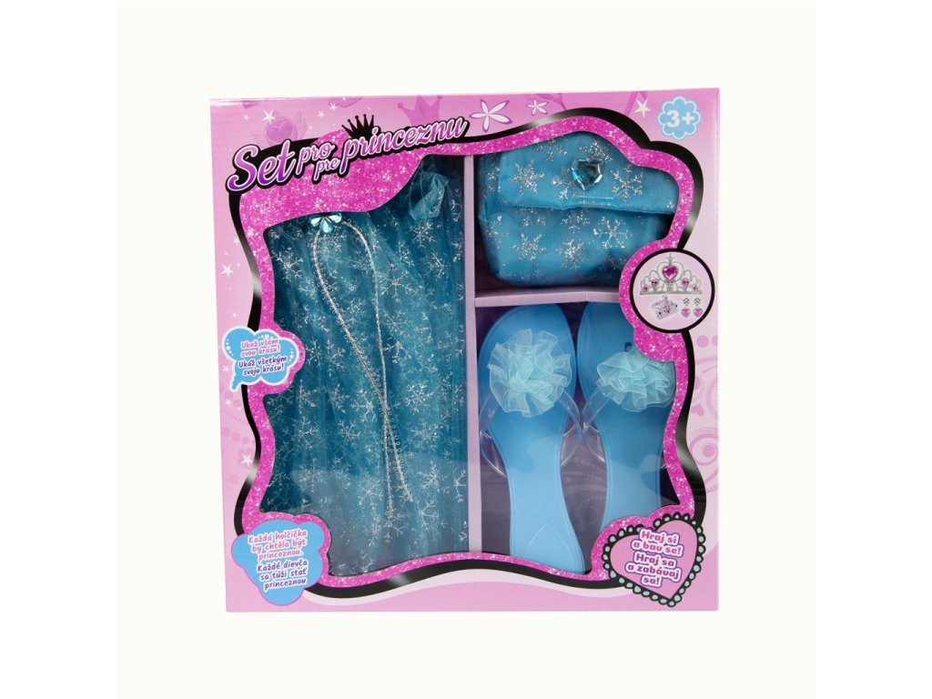 Set pro princeznu modrý, sukýnka, pantoflíčky, kabelka