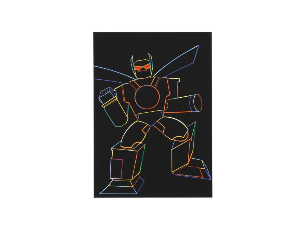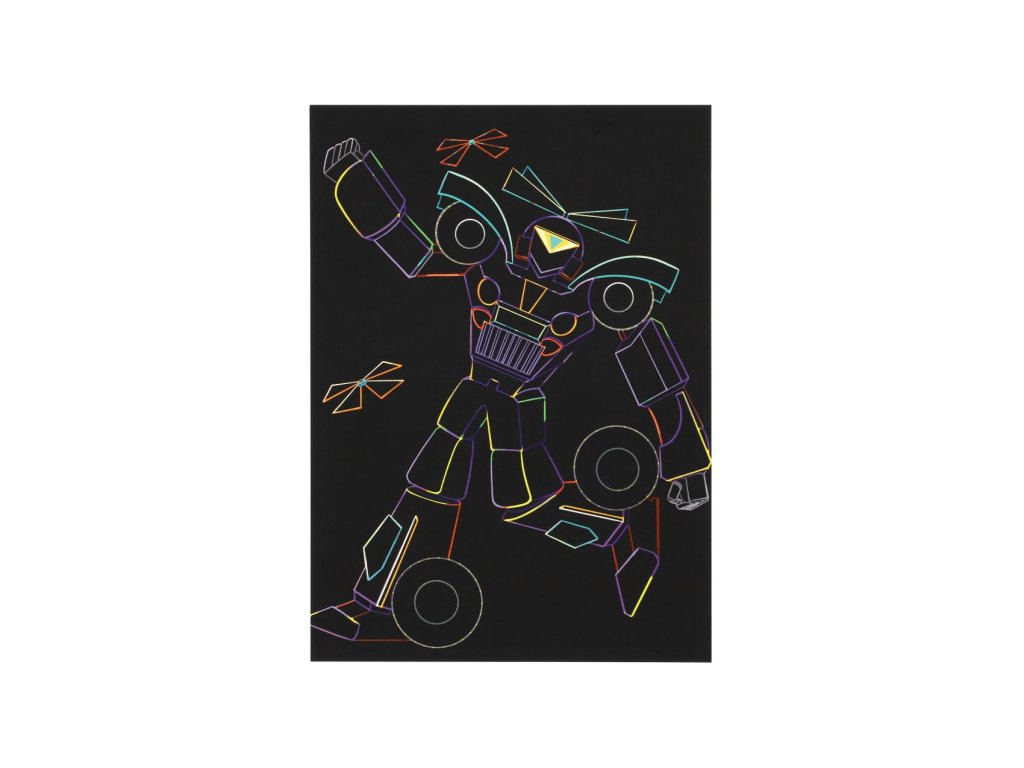 Škrabací obrázek, kde perem šeškrábete dle vlastní fantazie robota. Doškrabejte mu např. uniformu, atp. Dítě nakonec získá obrázek, kterým si může vyzdobit pokojíček, přičemž samo získá mnoho potřebných dovedností, jako je pozornost, trpělivost, opatrnost a přispěje k rozvoji tvořivého talentu a motoriky. Sada obsahuje 4 obrázky formátu A4.