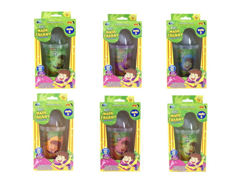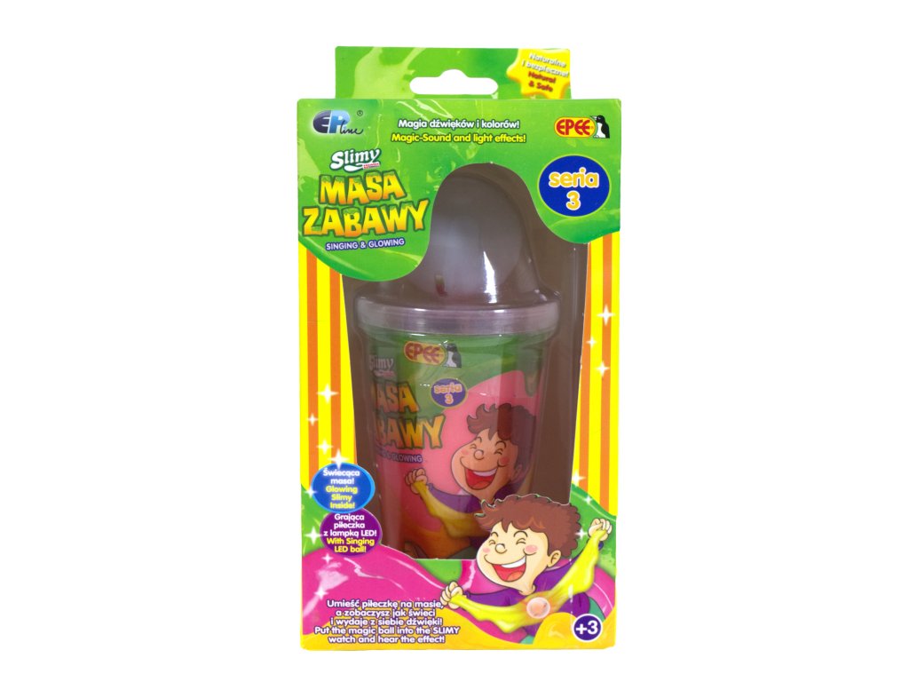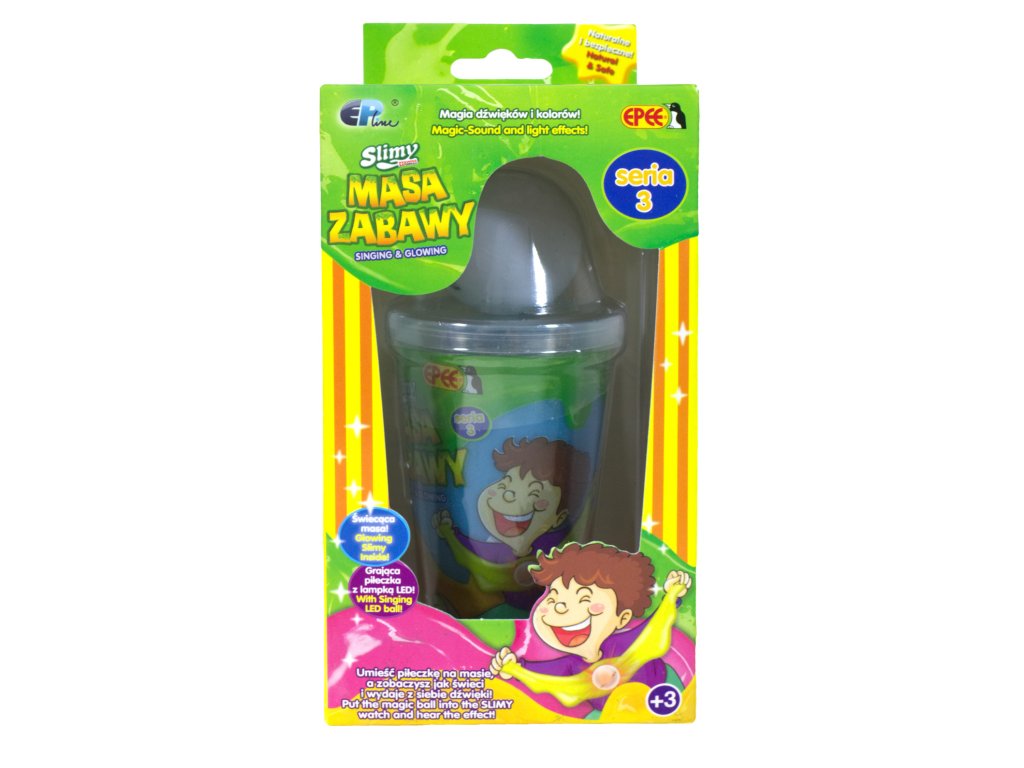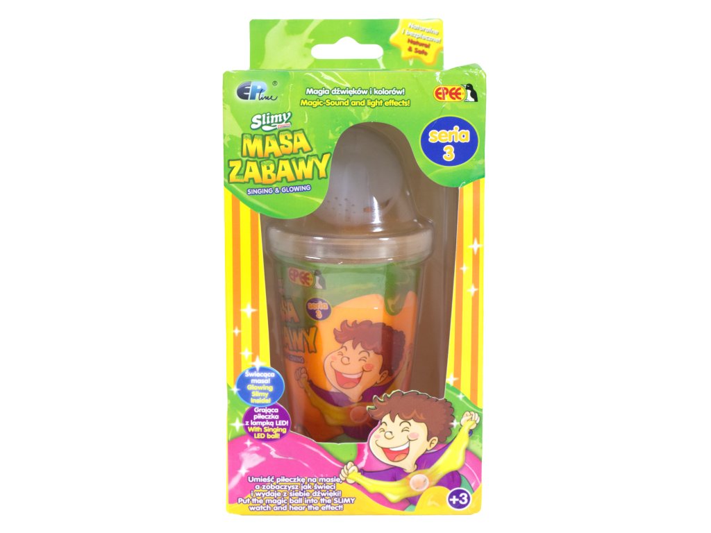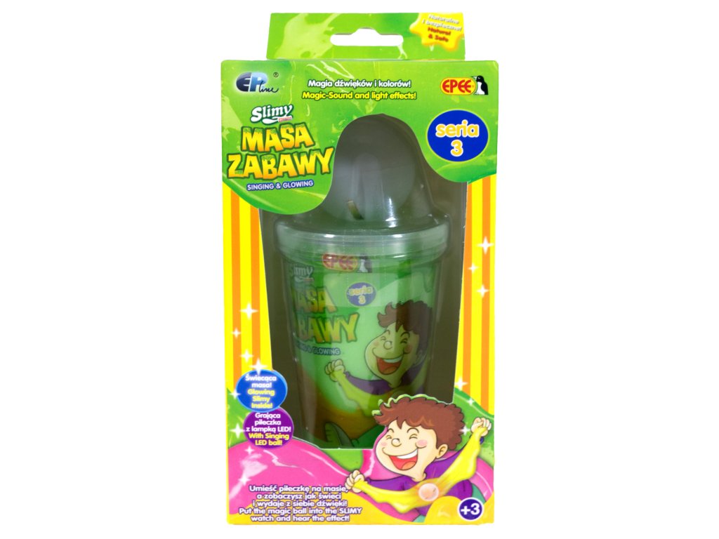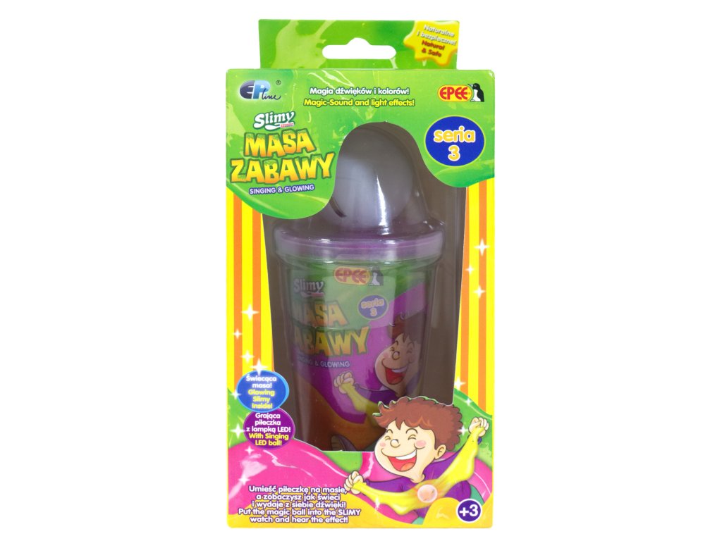 Užijte si bezva zábavu s tím slizem. Díky originální švýcarské receptuře je sliz bezpečný a zdravotně nezávadný. Má příjemný zápach a konzistenci, která vám umožní spoustu zábavy. Můžete ho natahovat, roztahovat do tenké blány, mačkat nebo vytvářet legrační prdivé zvuky. Pokud do něj vložíte kuličku, která je součástí balení, začne kulička blikat a vydávat zvuky. Vyžaduje 2 × 1.5V LR41 baterie, jsou součástí balení. Vhodné pro děti od tří let.