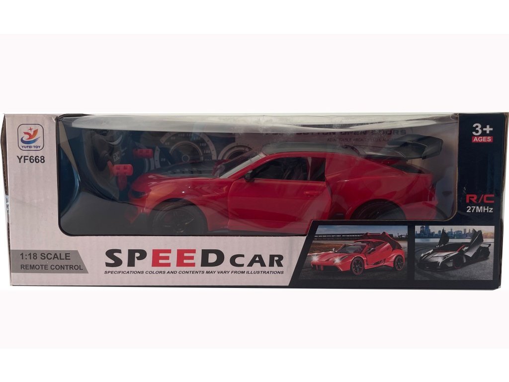 Sportovní auto na dálkové ovládání v měřítku 1:18. Velikost autíčka 23×5,5×9,5 cm. Funkční přední světla. V nabídce 2 barvy. Baterie pro provoz autíčka nejsou součástí balení.