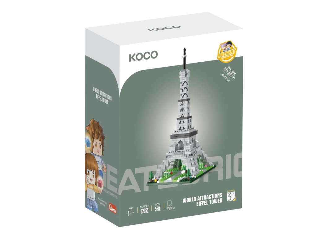 Stavebnice KOCO, to jsou velké příběhy v malých detailech. Sestavte si krásný model Eiffelovy věže. Skvělý tip pro procvičení jemné motoriky rukou. Balení obsahuje podrobný obrázkový návod.