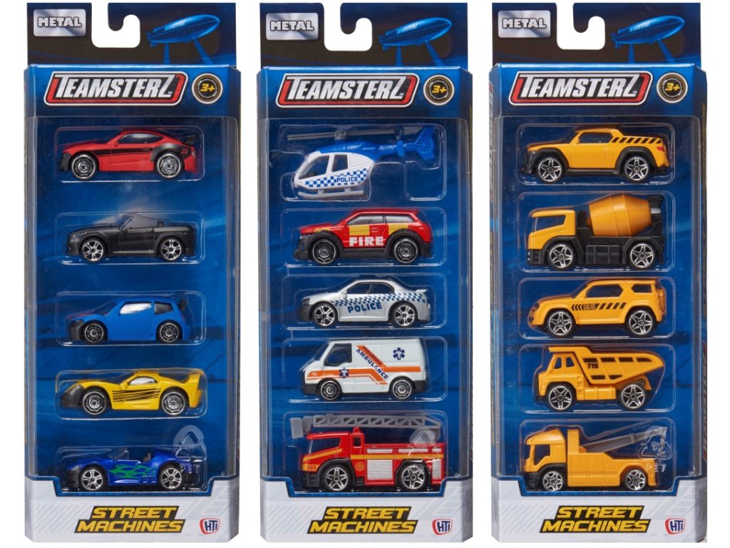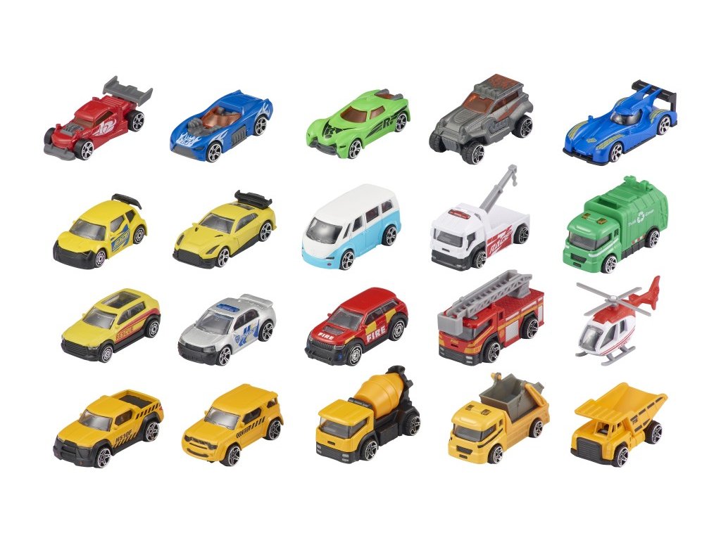 Sada pěti autíček – osbních/stavebních/záchranářských.