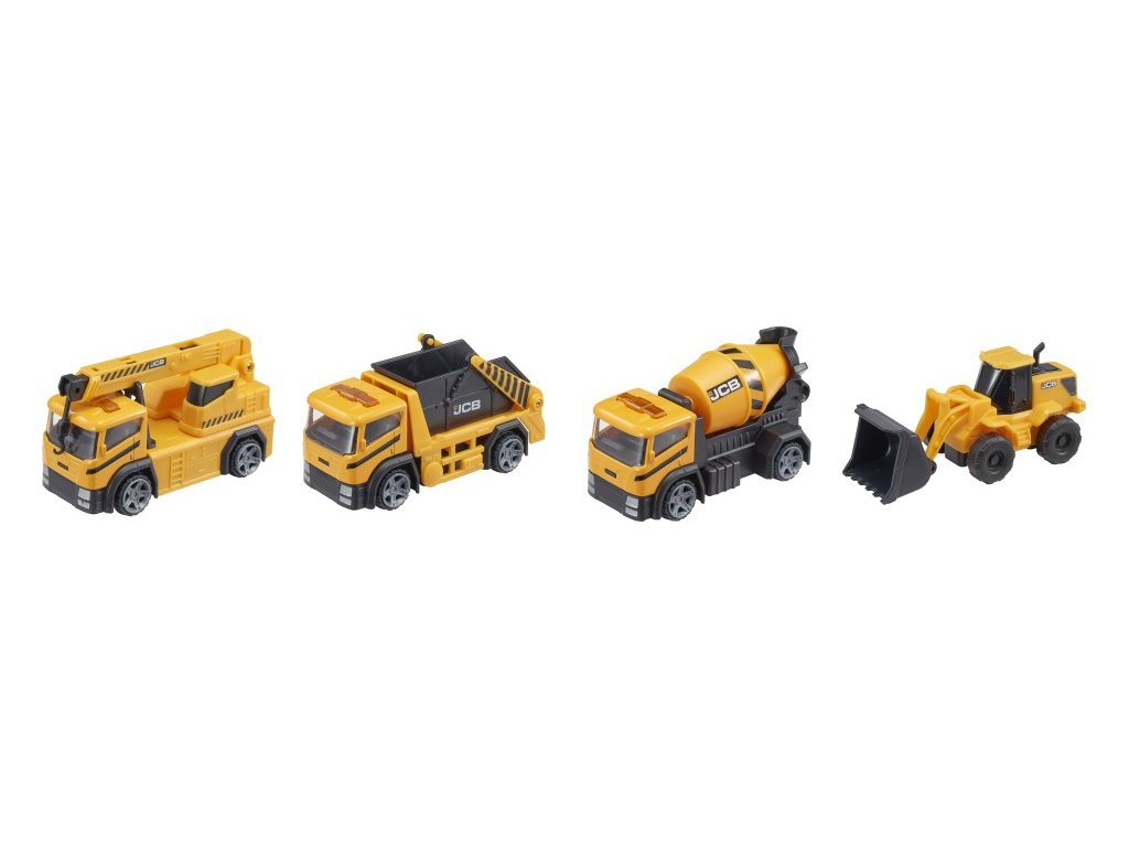 4 různá autíčka na stavbu- míchačka, náklaďák, bagr, auto s jeřábem. Vhodné pro děti od 3 let.