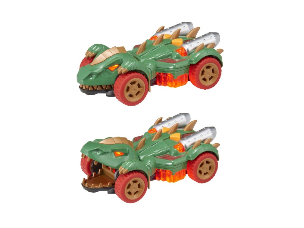 Tato monstrózní hračka přináší spoustu zábavy! Volně se pohybující kolečka spouštějí zvuk cvakání čelistí, zatímco monster zvuky a zvuky motoru dodávají hře pořádnou dávku vzrušení. Navíc se oči rozsvěcují a blikají červeně, což dává hračce ještě více tajemného a děsivého nádechu.