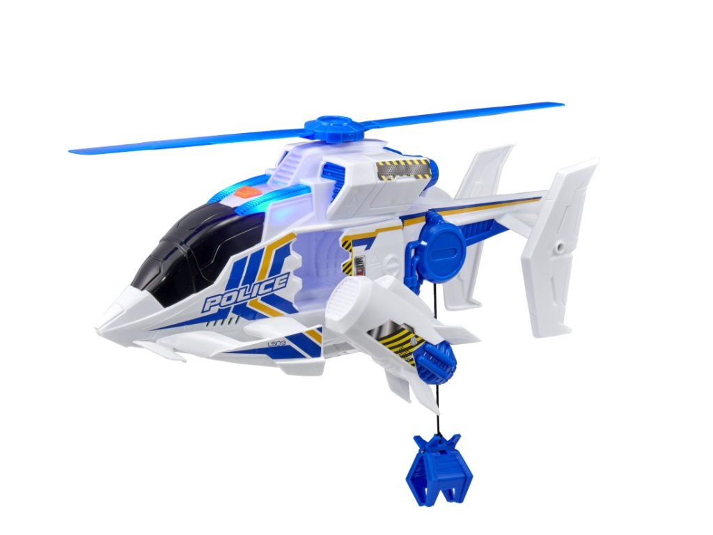 Vlastnosti produktu: ✔ Policejní záchranný vrtulník s blikajícími modrými světly a nouzovými sirénami ✔ Zvuky vrtulníku a futuristická hudba pro realistický zážitek ✔ Ruční naviják s hákem pro záchranné operace ✔ Pomáhá rozvíjet jemnou motoriku a představivost ✔ Obsahuje 3 x AAA baterie (součástí balení)