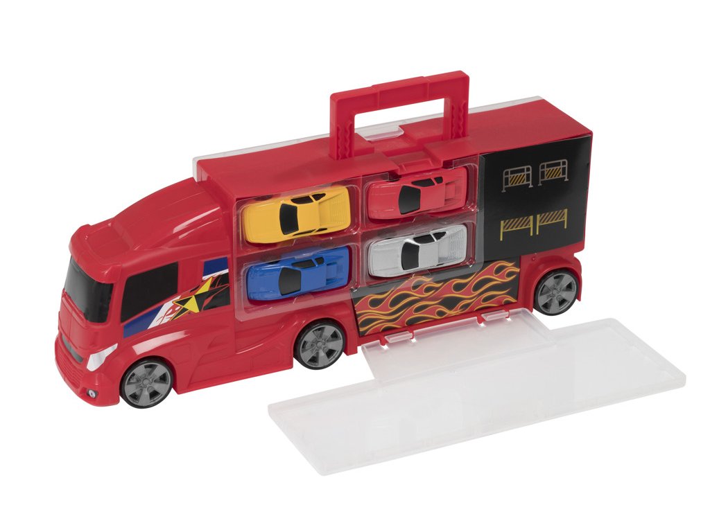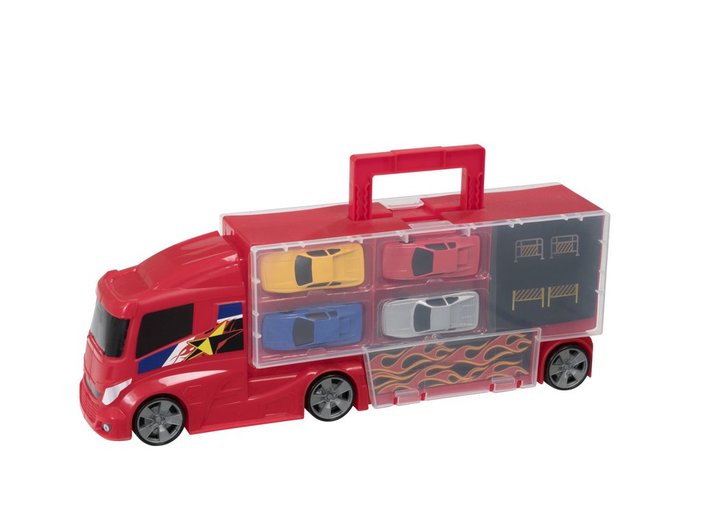 Zažijte vzrušující dobrodružství na silnicích s Teamsterz přepravou aut, která zahrnuje 4 autíčka a je ideální pro malé nadšence do automobilů a nákladní dopravy! Tento skvělý nákladní vůz na přepravu aut umožňuje dětem přenášet a parkovat malá autíčka. Díky pevnému a odolnému designu je přeprava aut jednoduchá a zábavná.