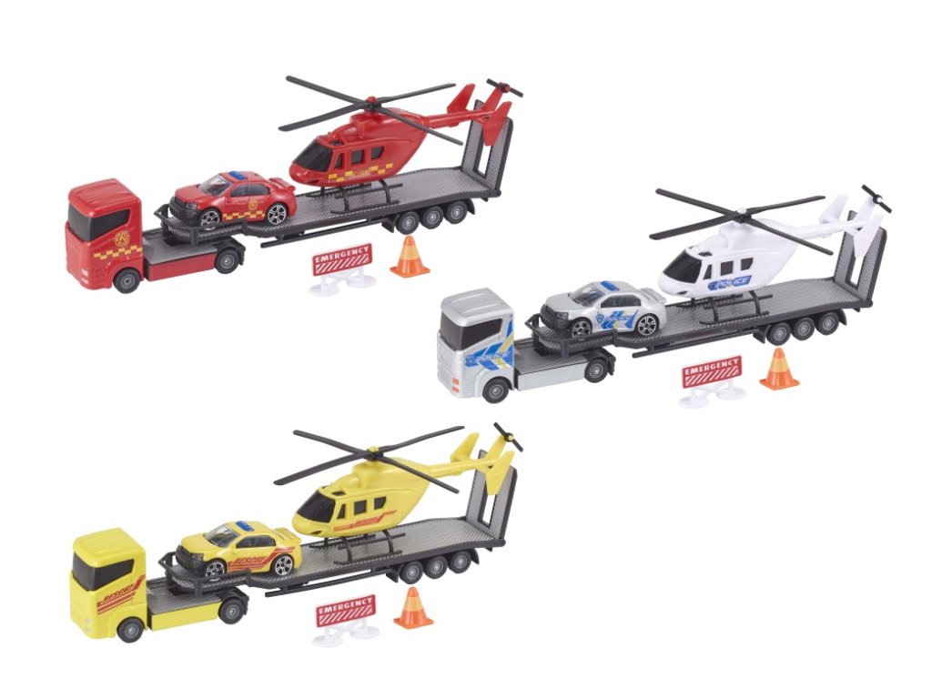 Tahač, který přepravuje auto a helikoptéru. K dostání ve 3 různých provedeních. Vhodné pro děti od 3 let.