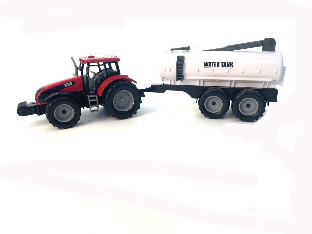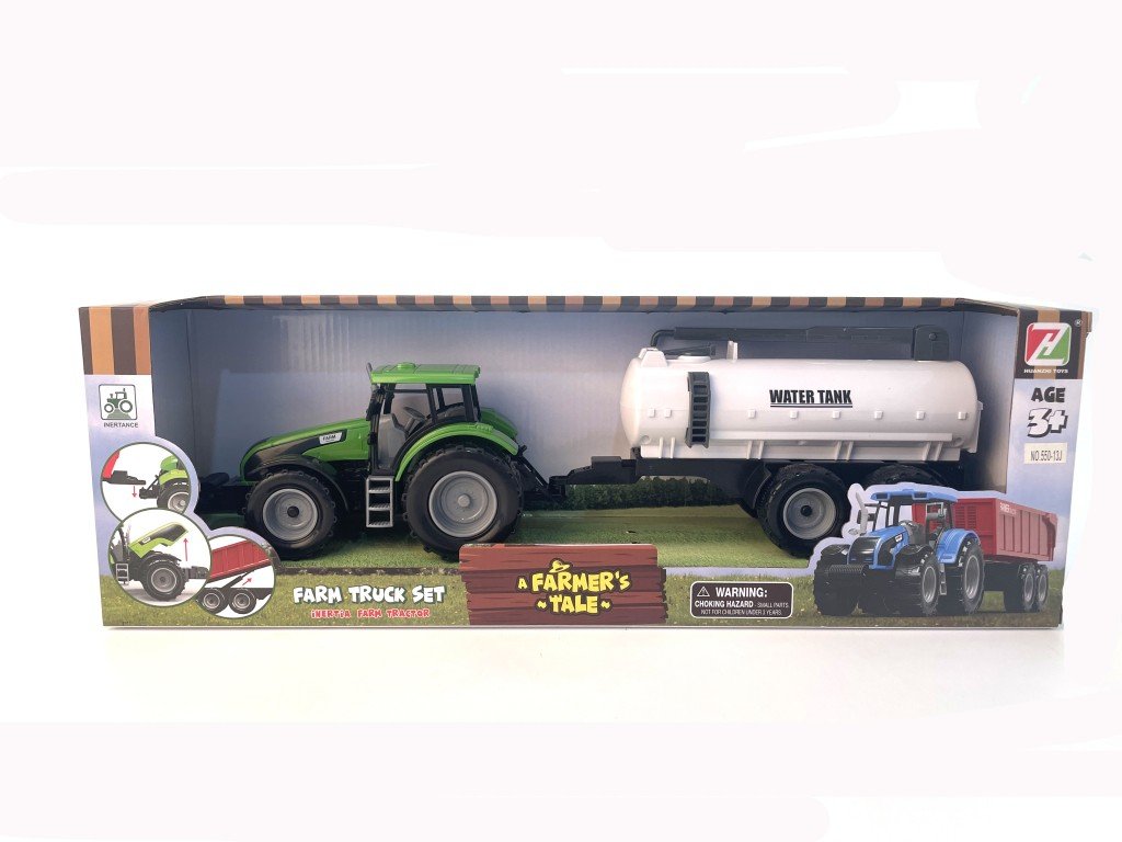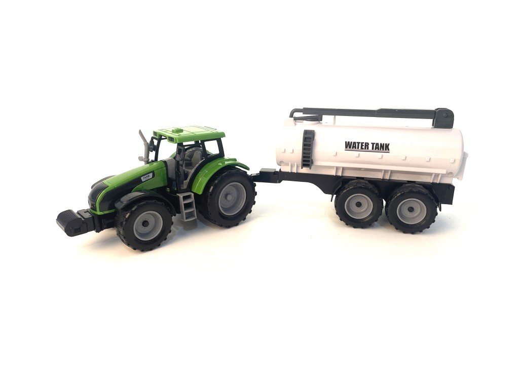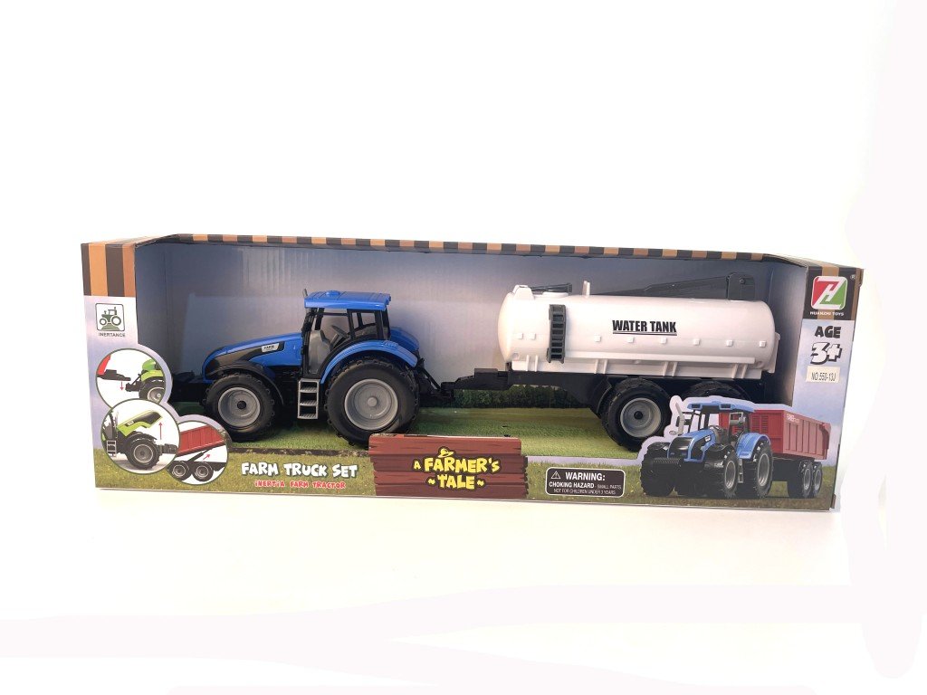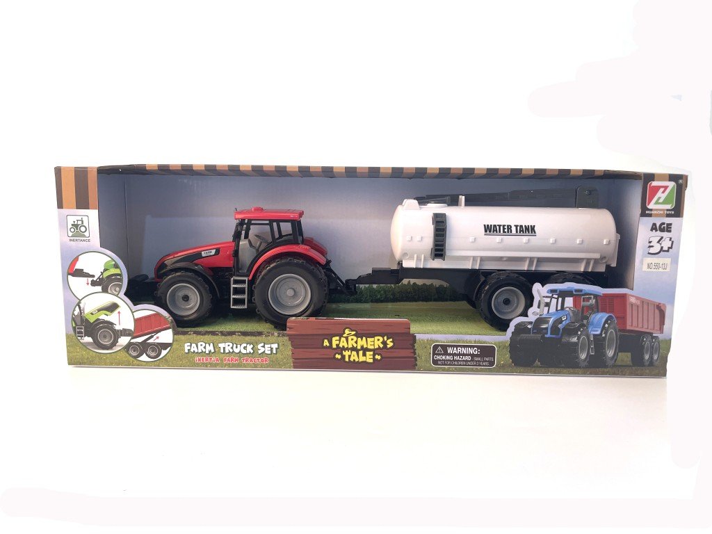 Tento skvělý traktor s přívěsem plným sena je ideální hračkou pro malé farmáře! Traktor o velikosti 45×9×7,5 cm je vybaven pohonem na setrvačník, což znamená, že stačí traktor zatlačit, a ten se sám rozjede.