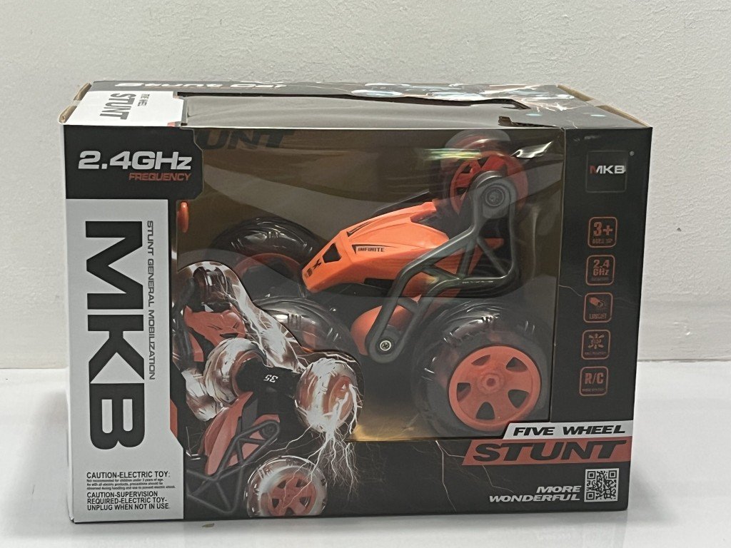 360° rotace. RC auto má 5 kol a je vhodné na kaskadérské kousky. Pohyb doleva, doprava, dopředu. Frekvence 2,4 GHz, maximální radiofrekvenční výkon 0,08mW, dosah dálkového ovládání 40 m a rychlost 1,2m/s.