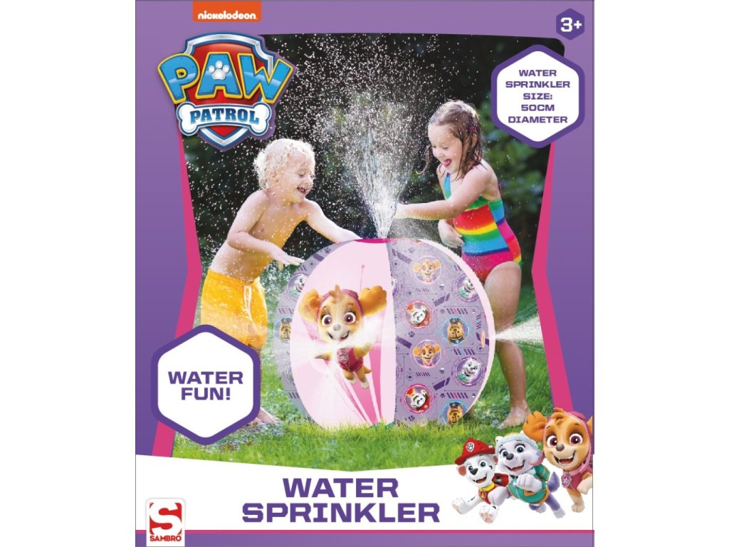Vodní nafukovací roztřikovač míč 50 cm Tlapková patrola růžový – do míče naplněněného vzduchem vložte hadici na vodu a zábava může začít. Lze využít jako stacionární rozstřikovač nebo jako plážový míc. Rozměr nafouklého míče je 50 cm.
