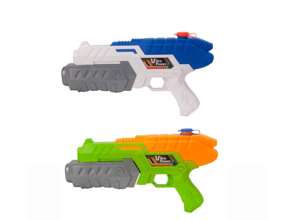 Ta nejlepší hračka pro horké letní dny! Vodní pistole o velikosti 30 cm dostupná ve dvouch barvách.