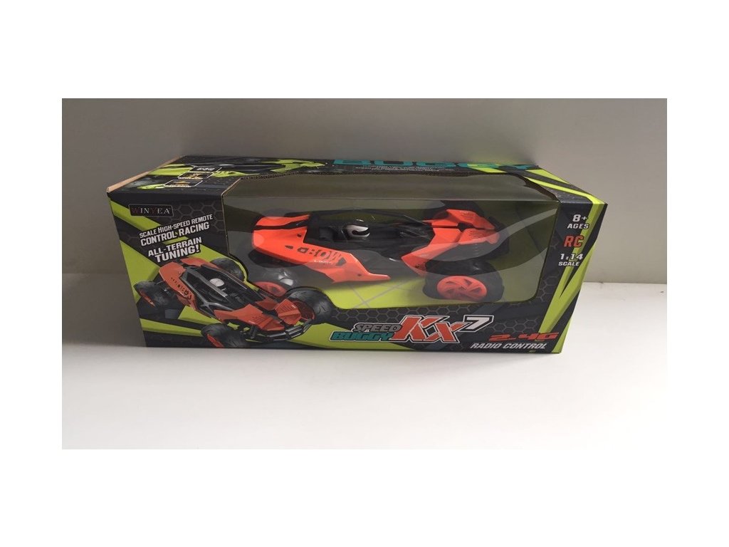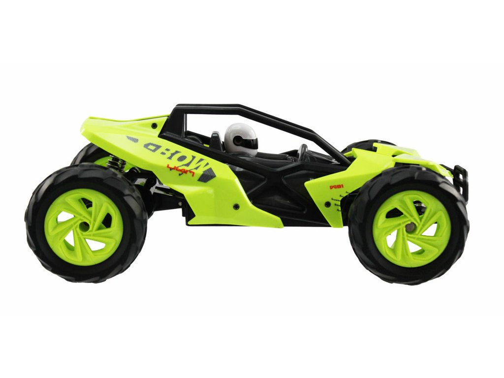 Skvěle ovladatelná RC Bugina do terénu. Výkonný motor dosahuje rychlosti až 20km/h. Absorbční tlumiče na obou nápravách, realistický vzhled.